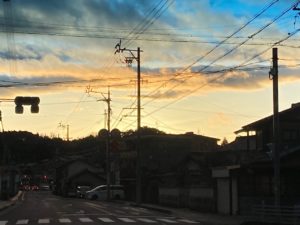 3月7日 夕方 ライトアップの奇麗な 梅露庵公園に行ってきました。お月様が恵那山の上に見えました。