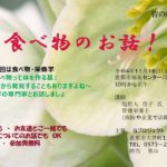 2023年4月24日 / 最終更新日時 : 2023年5月30日 ena_akiyama 大切なお知らせ ☆身体と心と食べること☆(第六回)【終了しました】 ( ↑ タイトルをクリックしてね、詳細が表示されます。) (第六回) 5月のみんなの座談会は 管理栄養士・塩野入信子先生のお話です。 塩野入先生は、昨年10月 第三回座談会に来ていただいた先生です。 前回は […]